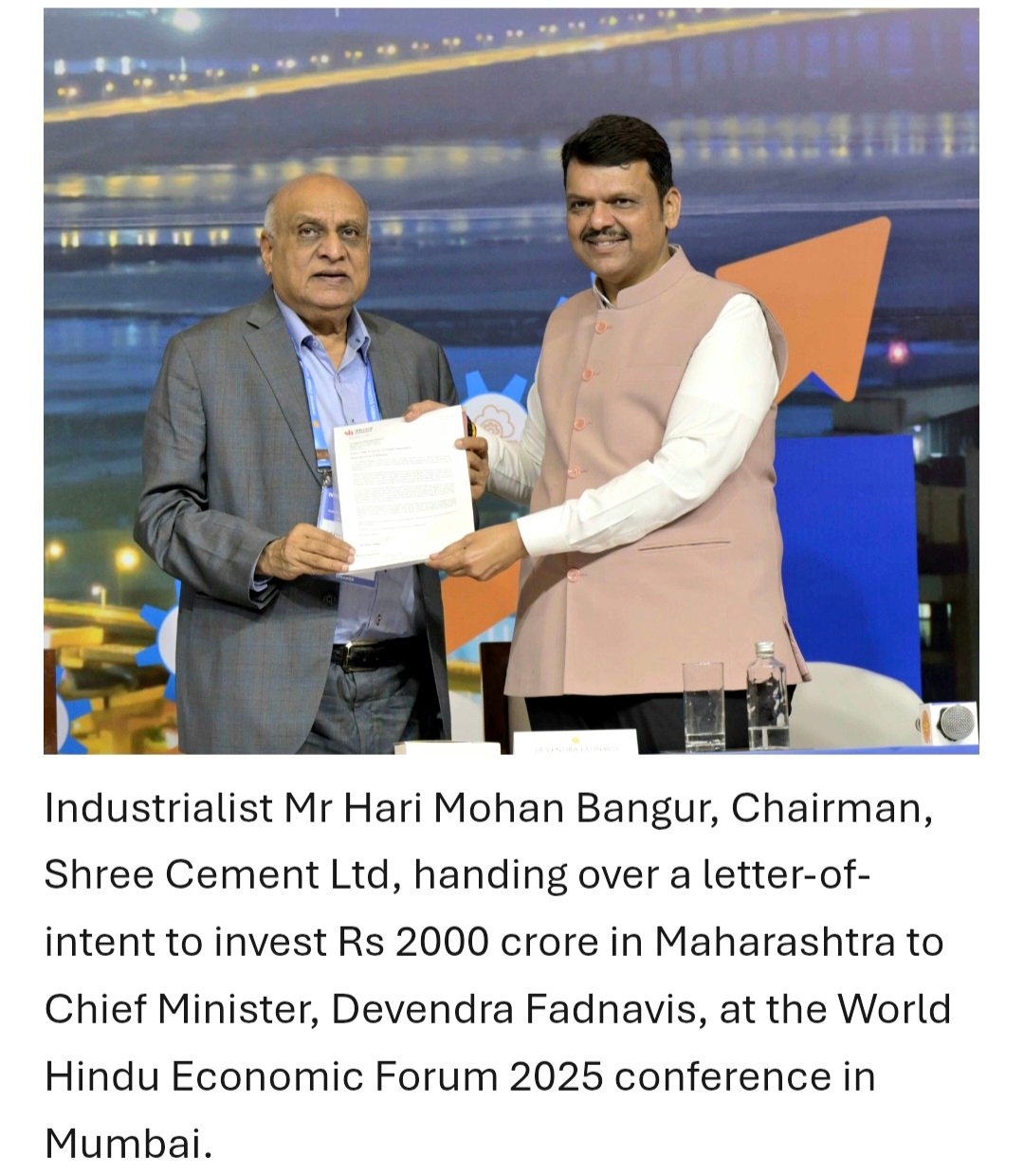 Staff Reporter : Kolkata, 20 December 2025: The World Hindu Economic Forum (WHEF) 2025, a two-day conference themed “Innovation, Self Reliance and Prosperity”, was formally inaugurated in Mumbai on Friday by the Chief Minister of Maharashtra, Shri Devendra Fadnavis. The inaugural session was attended by the Chief Minister of Madhya Pradesh, Shri Mohan Yadav, Swami Vigyananand, Founder of WHEF, Shri Rajesh Sharma, Chairman of the WHEF Organising Committee, and leading industrialists including Shri Hari Mohan Bangur, Chairman, Shree Cement Ltd, and Shri Sajjan Jindal, Chairman, JSW Group, along with policymakers, startup founders, business leaders and investors.