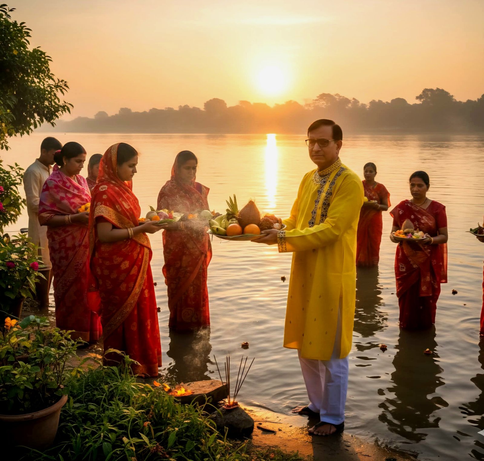 “Yes, but here ‘woman’ represents creation itself. Chhathi Maiya is Aditi—the primal energy that sustains life. In sociological terms, Chhath is the union of the feminine and masculine energies of the soul.”Dr. Ananta notes down:“Chhath Puja is a bridge of social harmony. In the light of the Sun, caste, religion, and gender dissolve. Purity means equality.”5. Offering: The Magic of SunsetAt sunset, the red Sun sinks into the river’s edge. Drums and conch shells echo as hymns rise to the sky.